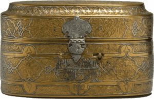 Lidded Box of Muhammad al-Hamawi, Timekeeper at the Umayyad Mosque, Damascus from the late 14th century. Credit: The Metropolitan Museum of Art